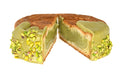 Lapte de vacă integral, făină de grâu T45 certificată Label Rouge, unt 82% grăsime, fondant albă (zahăr, sirop de glucoză, apă), zahăr, 7% pastă de fistic (99% fistic, colorant alimentar natural, curcumă), gălbenuș pasteurizat, apă, făină de grâu T480, amidon de porumb, gelatină, maia (făină de grâu, apă), 1,3% fistic, ou întreg pasteurizat, smântână 20% grăsime (lapte de vacă pasteurizat, culturi lactice selecționate, proteine din lapte), drojdie de panificație, albuș pasteurizat, sare iodată.